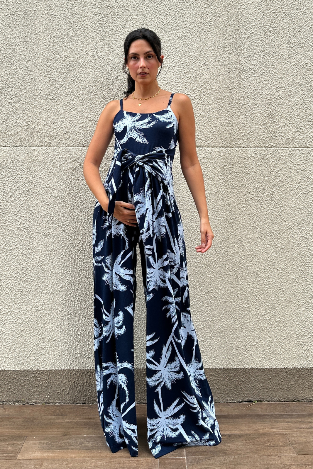 Macacão Gestante Pantalona Estampado Zen Litoral , une conforto e elegância em uma modelagem que acompanha todas as fases da maternidade. Com faixa ajustável que valoriza a cintura e busto duplo para mais segurança e sustentação. O caimento fluido alonga a silhueta e traz um toque sofisticado para qualquer ocasião.