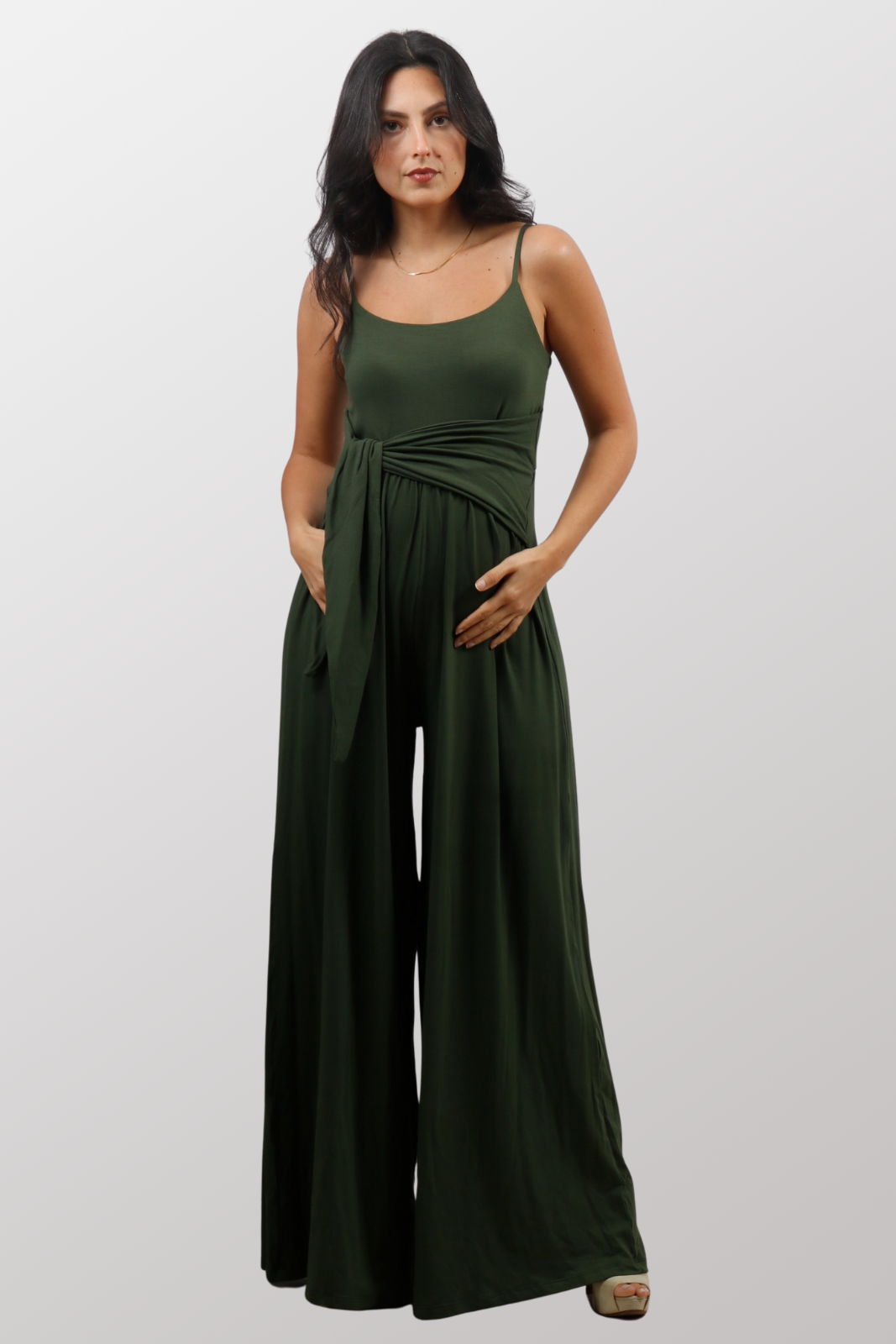 Macacão Gestante Pantalona Zen Verde Oliva , une conforto e elegância em uma modelagem que acompanha todas as fases da maternidade. Com faixa ajustável que valoriza a cintura e busto duplo para mais segurança e sustentação. O caimento fluido alonga a silhueta e traz um toque sofisticado para qualquer ocasião.
